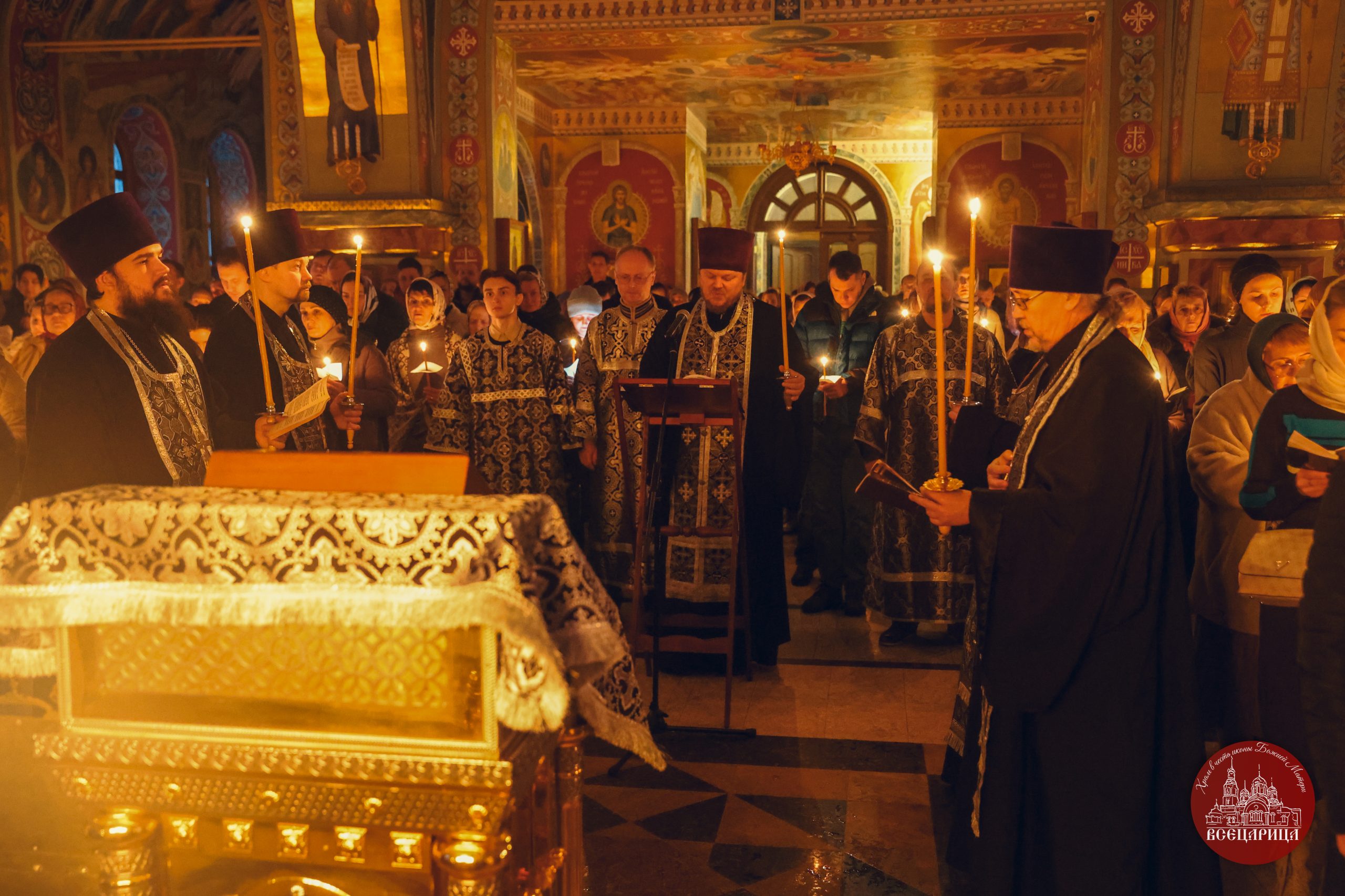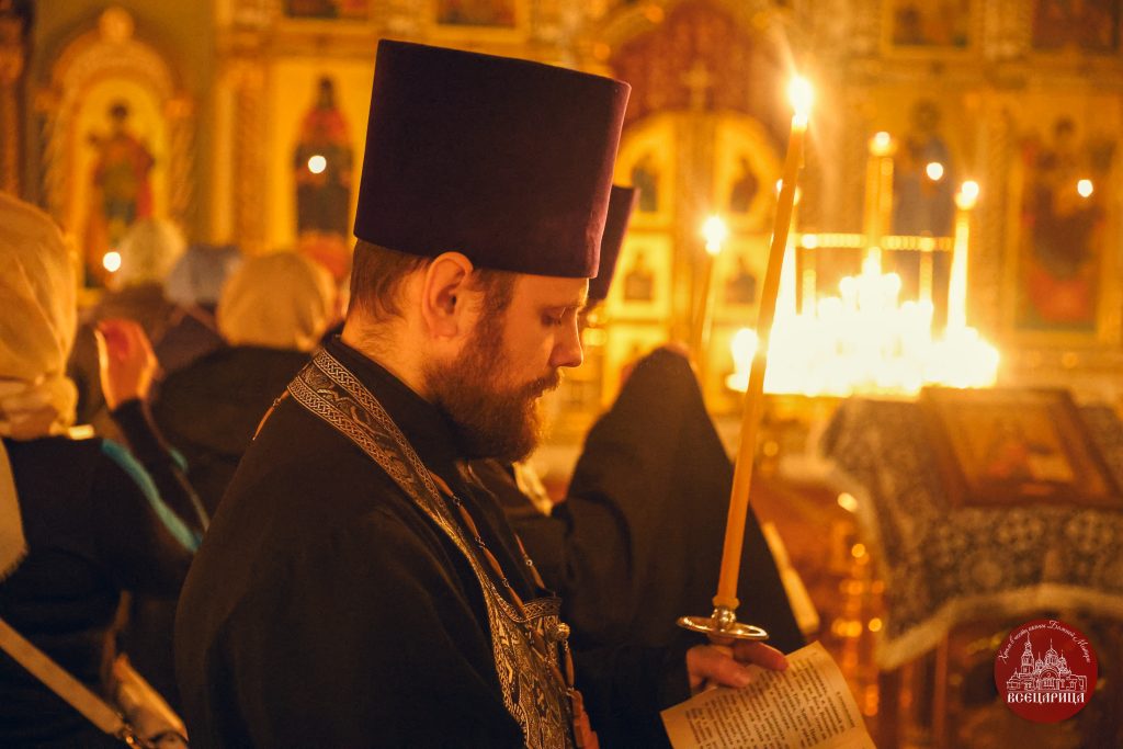 23 февраля 2026 года, в понедельник первой седмицы Великого поста, в родном храме в честь иконы Божией Матери «Всецарица», настоятель храма протоиерей Андрей Скакалин, совершил повечерие с чтением первой части Великого канона преподобного Андрея Критского.