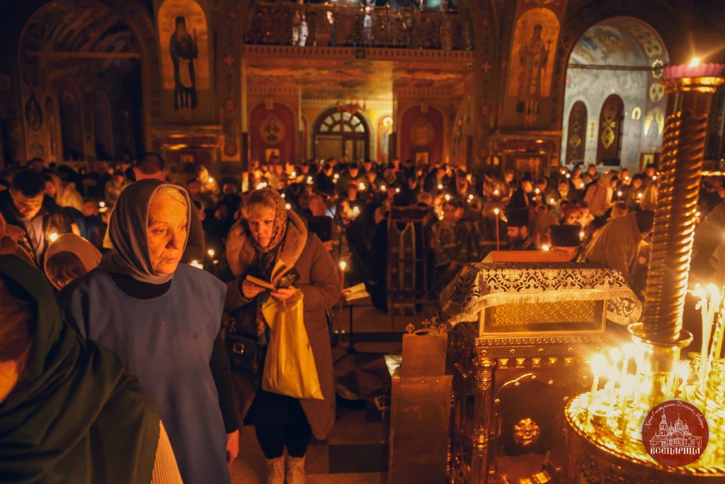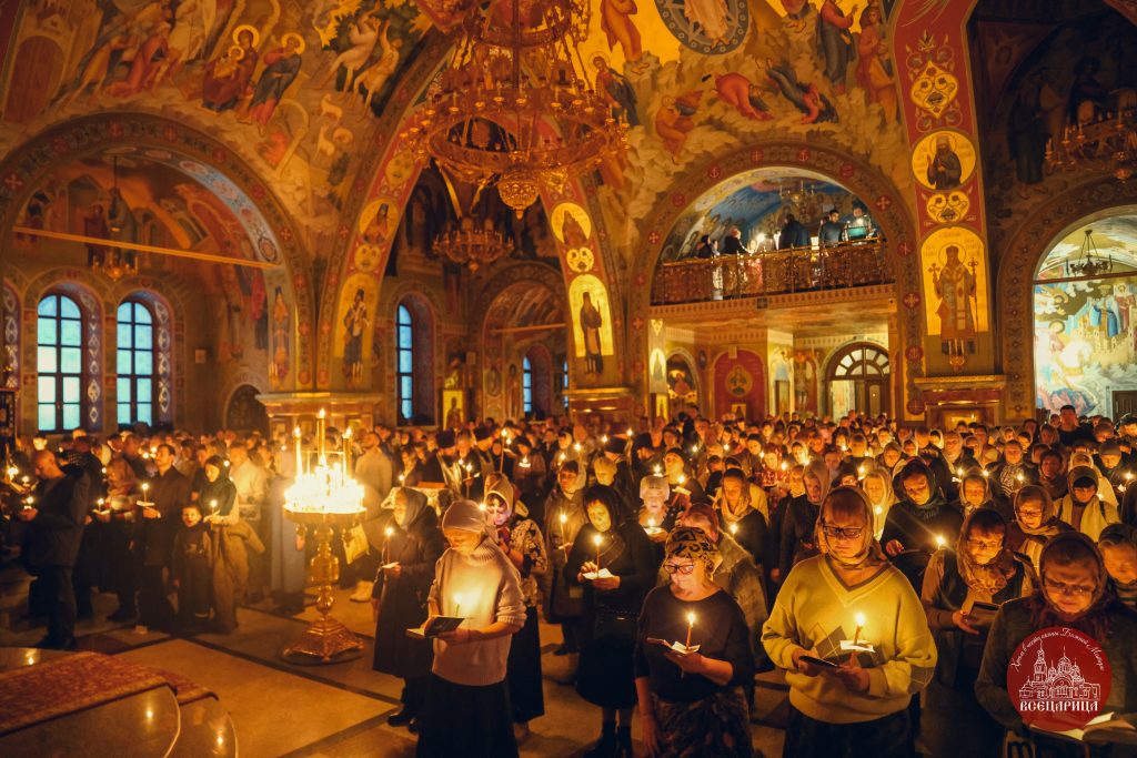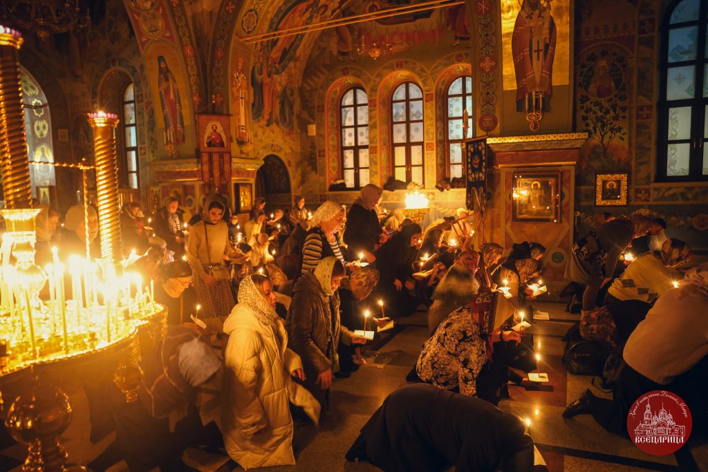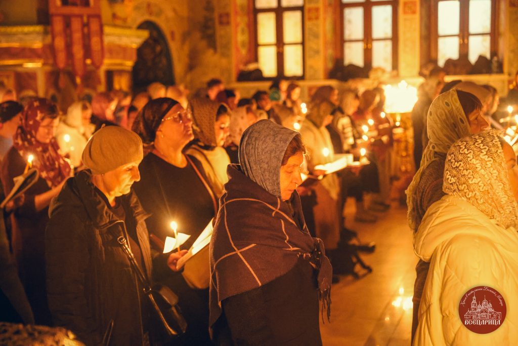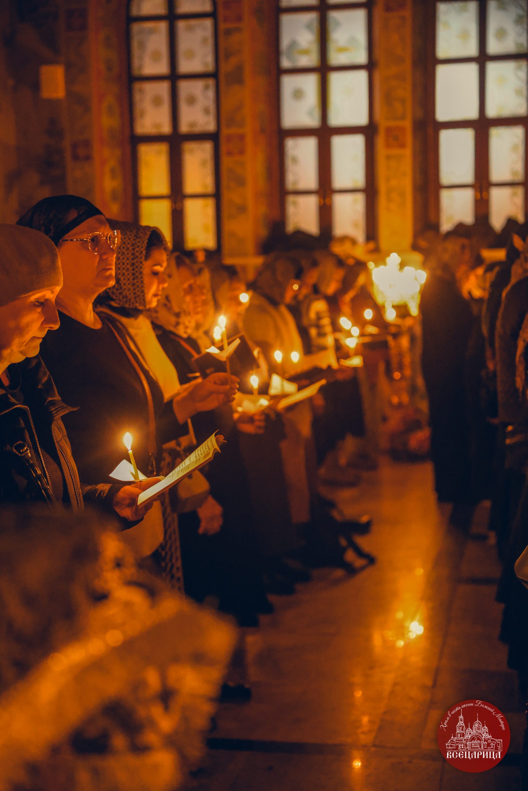 Чтение канона происходило в полумраке, что еще больше настраивало людей на чувство покаяния. Храм освещался только лампами на клиросе и свечами – на подсвечниках, а также в руках молящихся священников и прихожан.