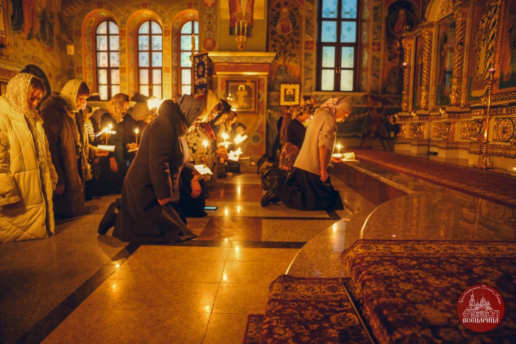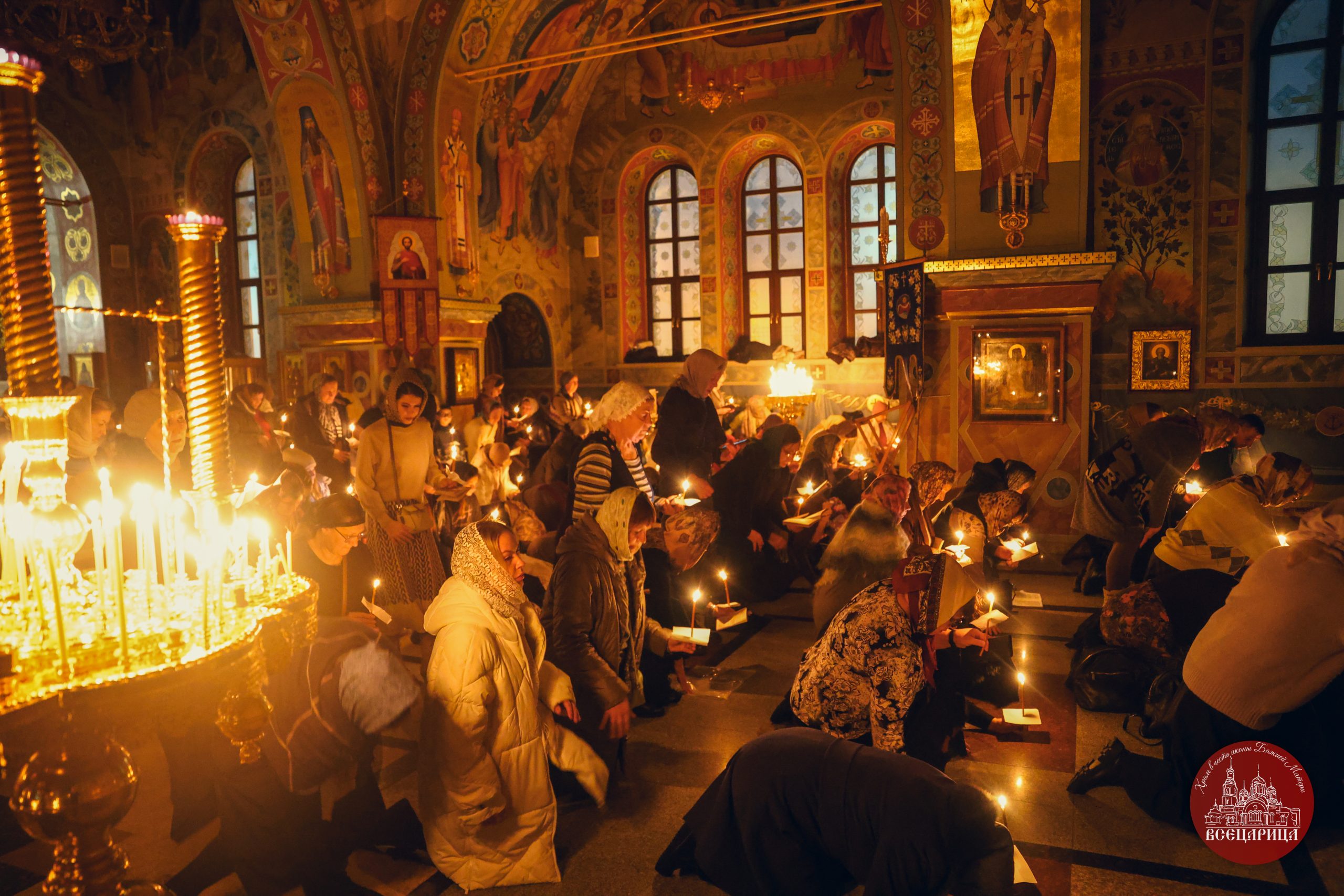 При пении кондака «Душе моя, душе моя, восстани, что спиши?» все находившиеся в храме традиционно опускались на колени.