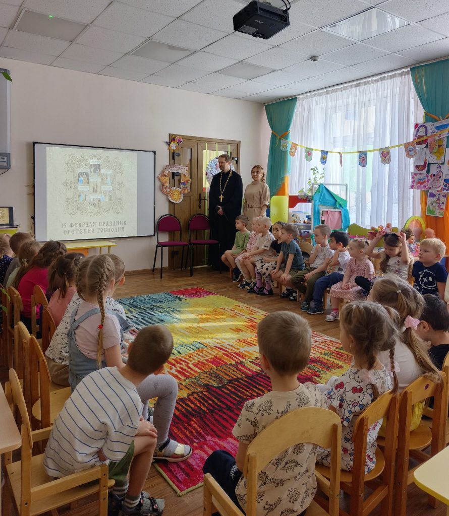 17 февраля клирик храма в честь иконы Божией Матери именуемой «Всецарица» иерей Иоанн Филатов и методист по работе со школами и детскими садами Надежда Николаевна Филатова провели беседу с воспитанниками и педагогическим коллективом МБДОУ» Детский сад общеразвивающего вида №199″ о празднике Сретения Господня, о православном праздновании масленичной недели и о Великом посте. Предоставили детскому саду наглядный материал. Так же в предверии празднования Дня защитника Отечества показали ребятам мультфильмы о Святых земли русской: Александре Невском, Дмитрии Донском, Георгии Победоносце, Князе Владимире.