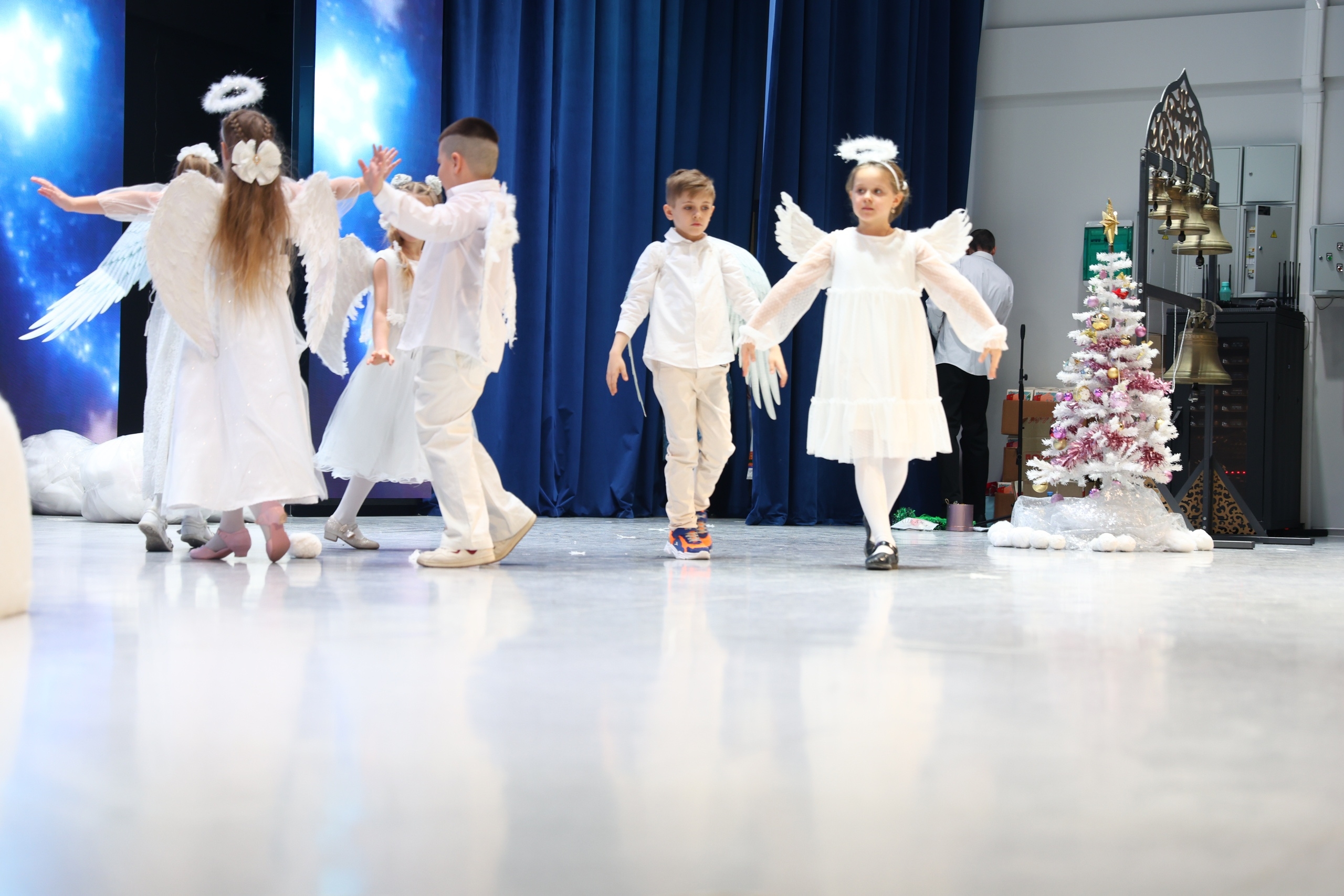 Воспитанники Воскресной школы продемонстрировали своё мастерство, выступив с прекрасными номерами. Творческое выступление каждого коллектива стало частью Рождественской истории- сказки, наполненной радостью и теплом. Каждый номер был органично встроен в единый сюжет сказки «Снежный ангел», созданной по мотивам сказки Елены Пименовой.