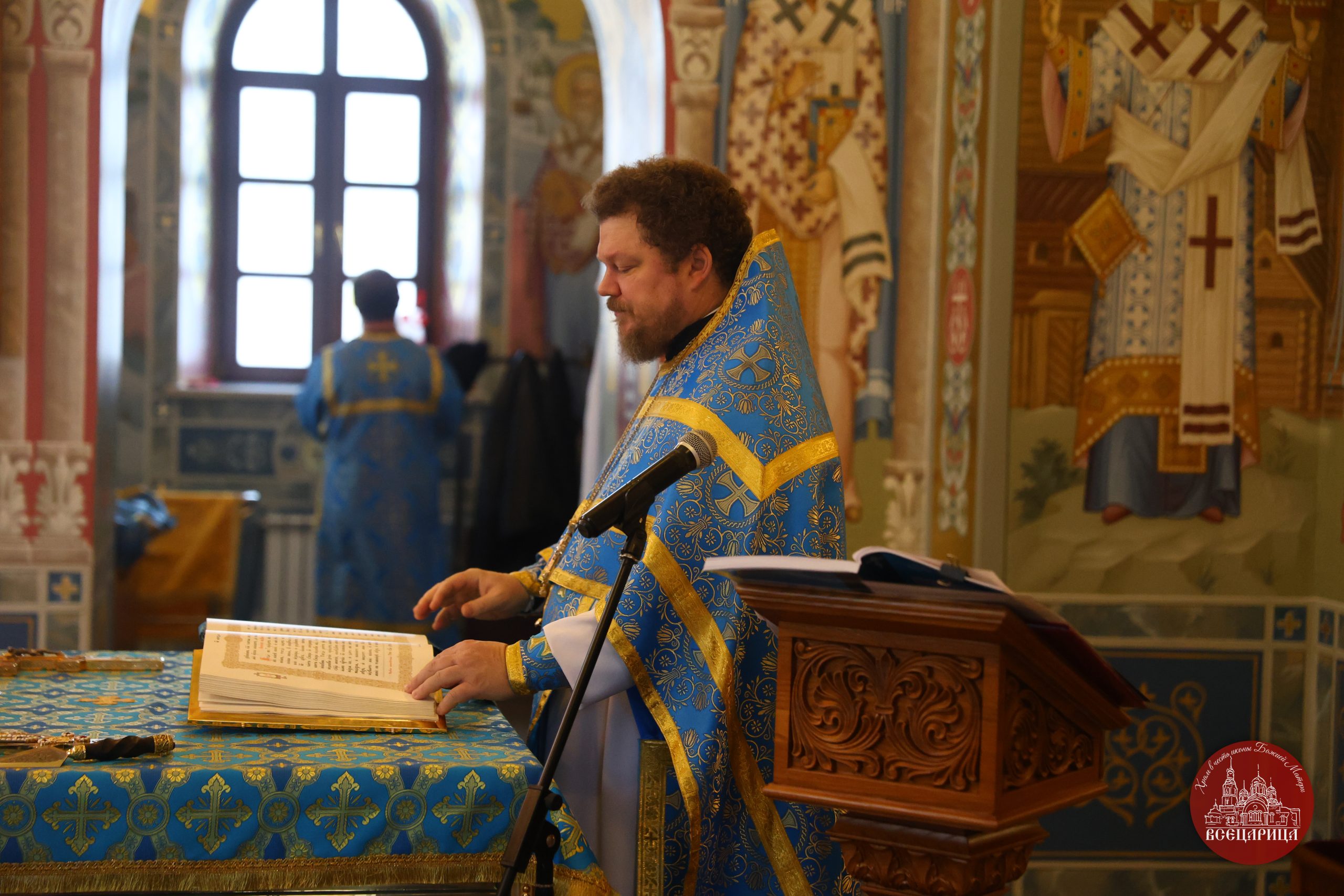 Ему сослужили:иерей Иоанн Филатов,иерей Никита Сладченко