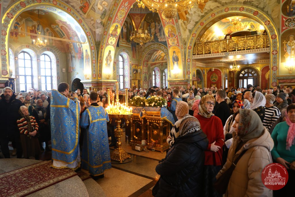 Накануне вечером здесь совершалось всенощное бдение с литией. После чтения Евангельского отрывка праздничного дня молящихся помазали освященным елеем и раздали освященный хлеб.