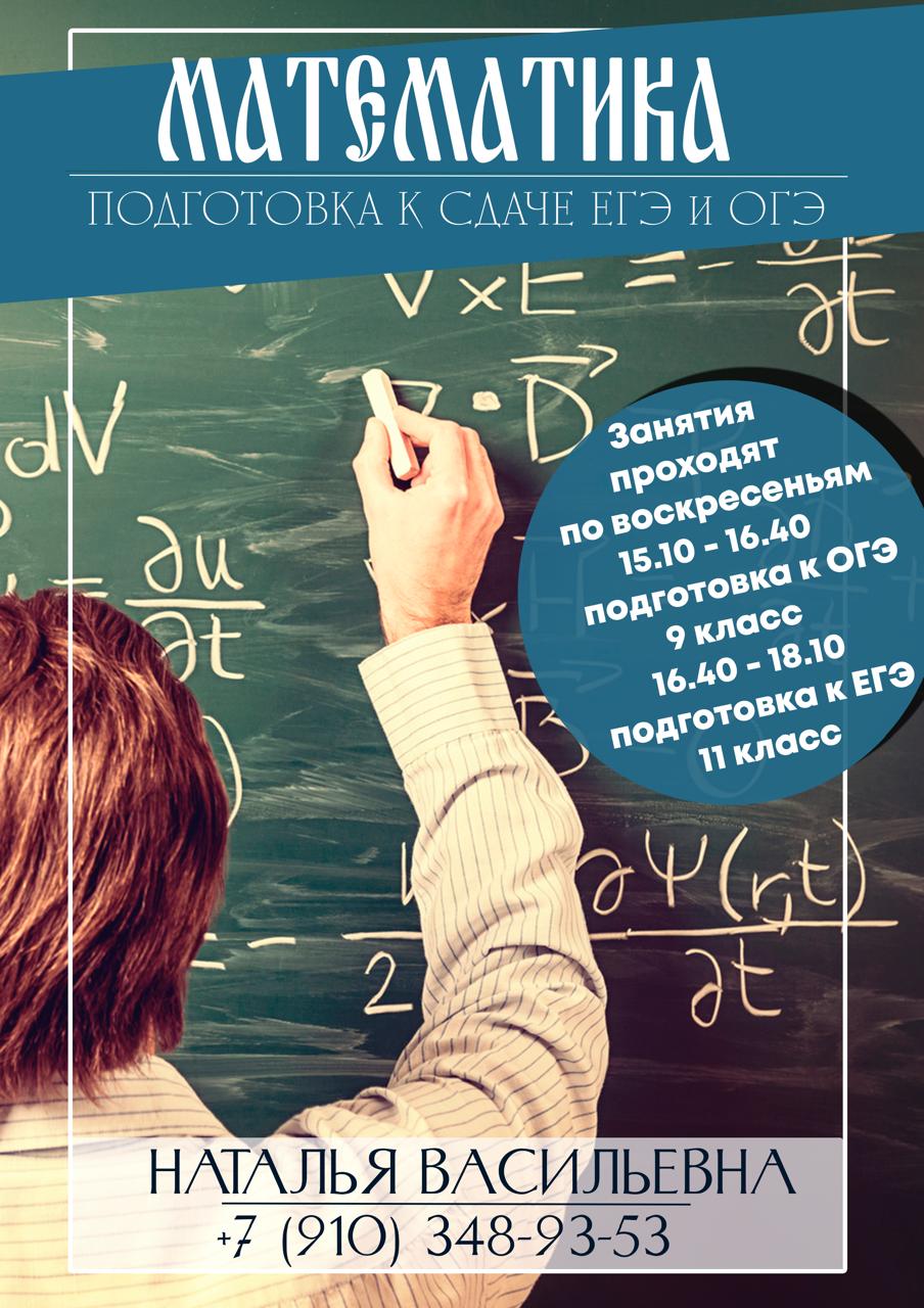 На базе нашего храма действует бесплатная подготовка к сдаче ОГЭ и ЕГЭ по математике.