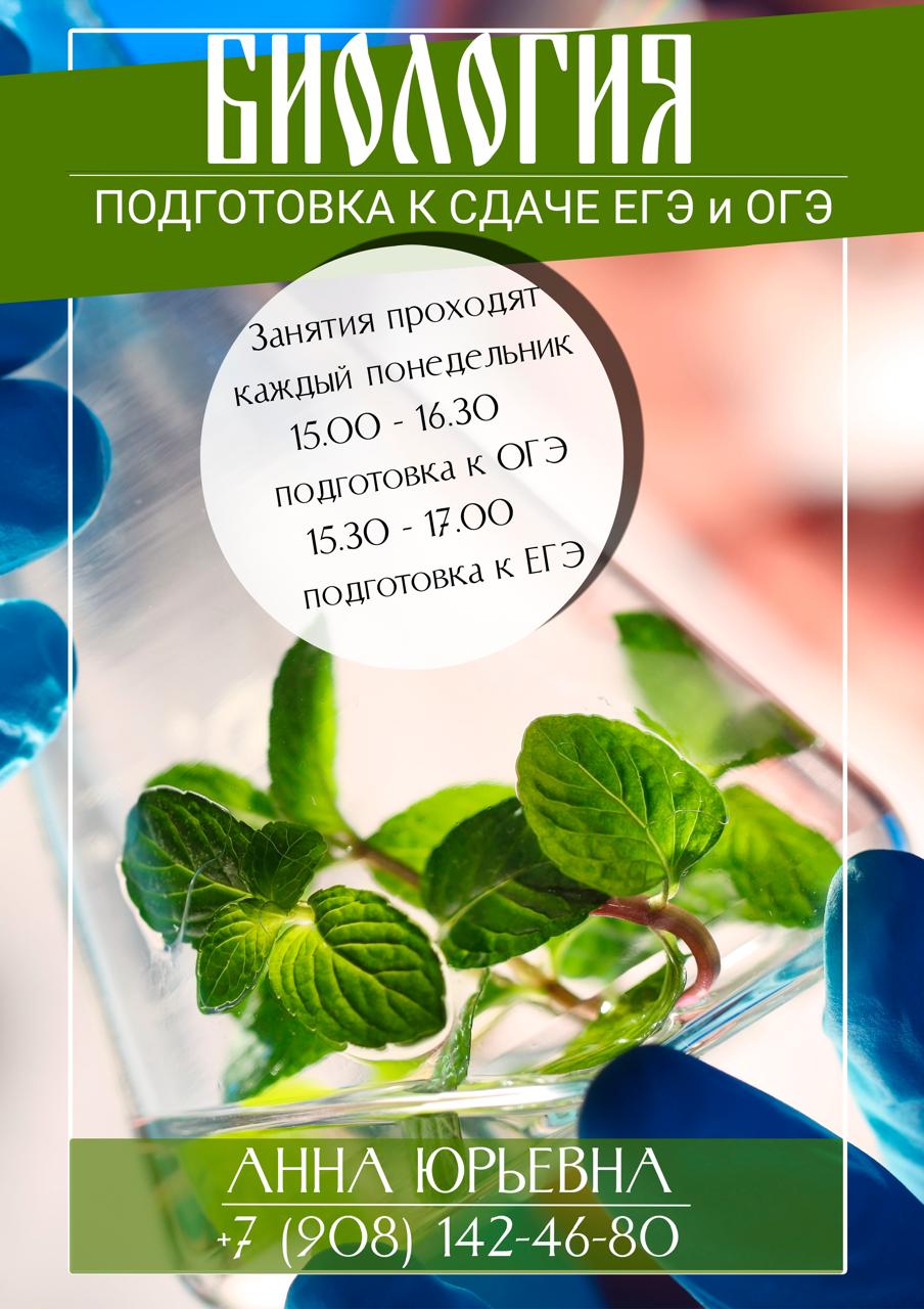 | ЗАНЯТИЯ ПО ПОДГОТОВКЕ К СДАЧЕ ОГЭ И ЕГЭ ПО БИОЛОГИИ |