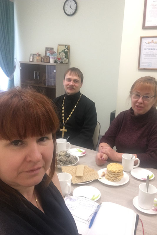На встрече присутствовали помощник благочинного по РОиК Центрального церковного округа Маяцкая Н.И., ответственный священнослужитель благочиния по духовно-нравственному взаимодействию со светскими учебными учреждениями иерей Евгений Вжесневский, которые ознакомились с отчетными документами.
