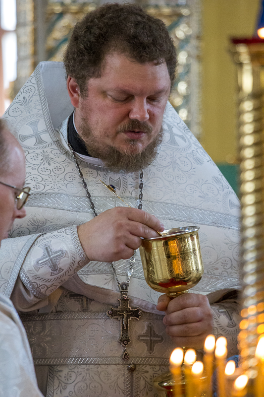 В сегодняшний день много верующих собрались под сводами храма в честь иконы Божией Матери «Всецарица», чтобы разделить радость молитвенного общения в двунадесятый праздник Вознесения Господня и приобщиться Святых Христовых Таин. Торжественное богослужение в этот день возглавил настоятель храма протоиерей Андрей Скакалин.