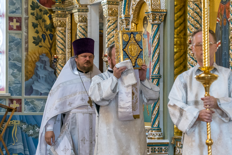Православная Церковь отмечает двунадесятый праздник Преображения Господня. В это день в храме в честь иконы Божией Матери «Всецарица» было совершено праздничное Богослужение,которое возглавил настоятель храма протоиерей Андрей Скакалин. После отпуста литургии отцом Андреем была вознесена молитва на освящение начатков «нового плода лозного» и окропление яблок, винограда и других плодов нового урожая Святой водой.